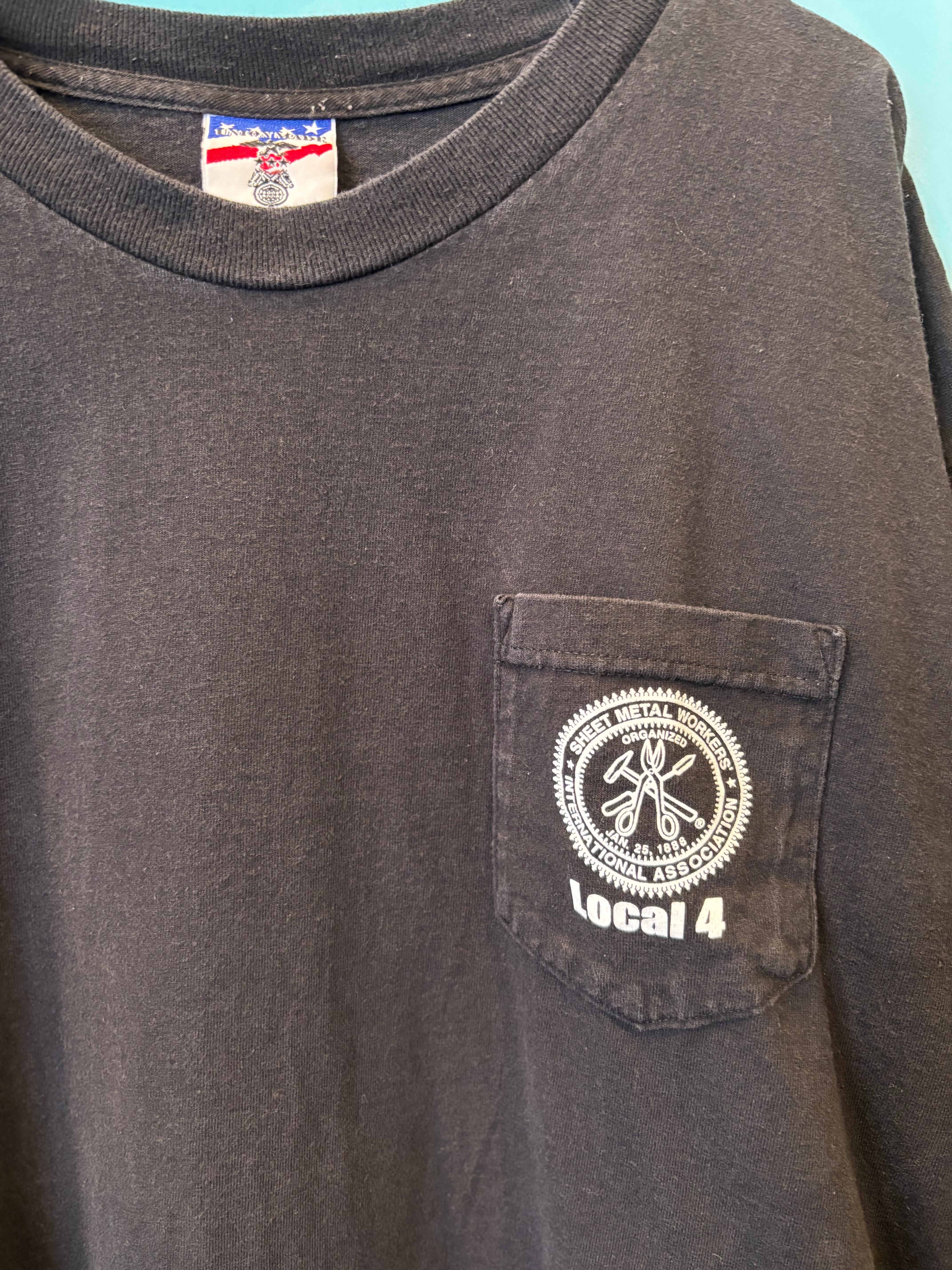 古着 USED デザインT union made 板金労働組合 黒 XL