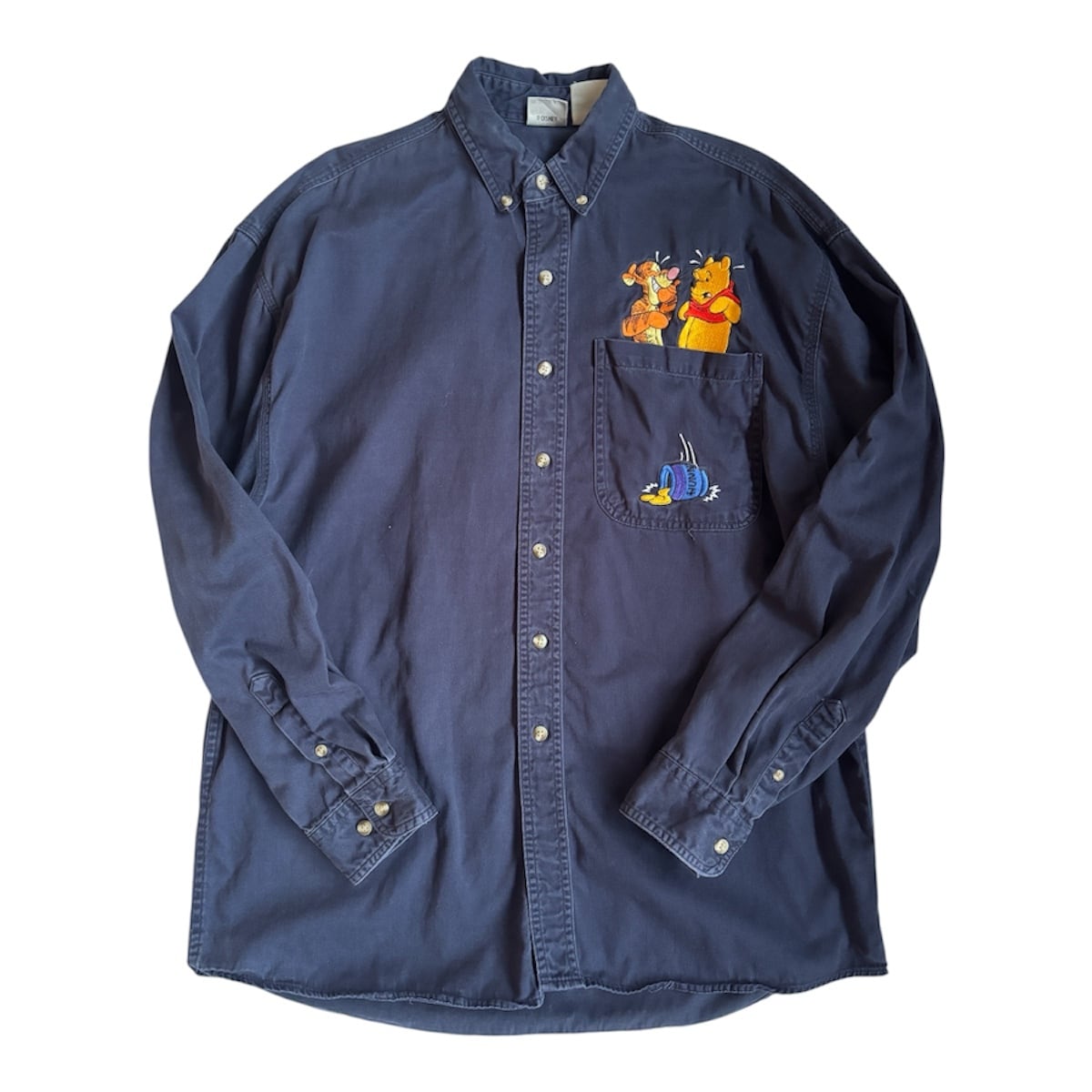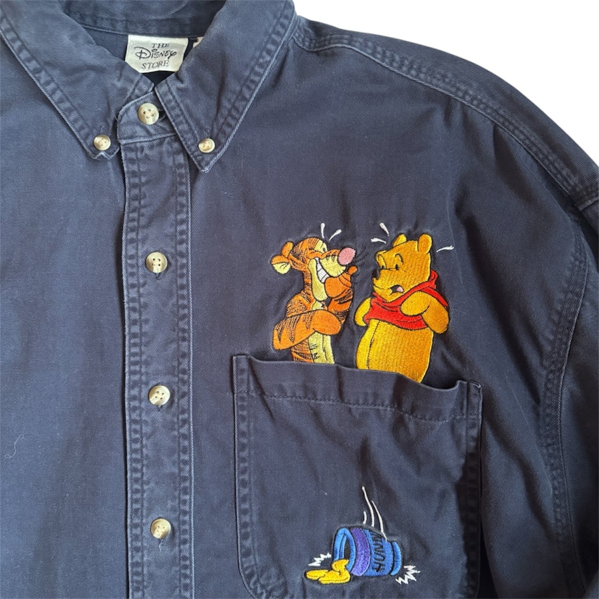 胸ポケットにはプーさんとティガーの刺繍、さらにハチミツの壺モチーフも施された一枚です。