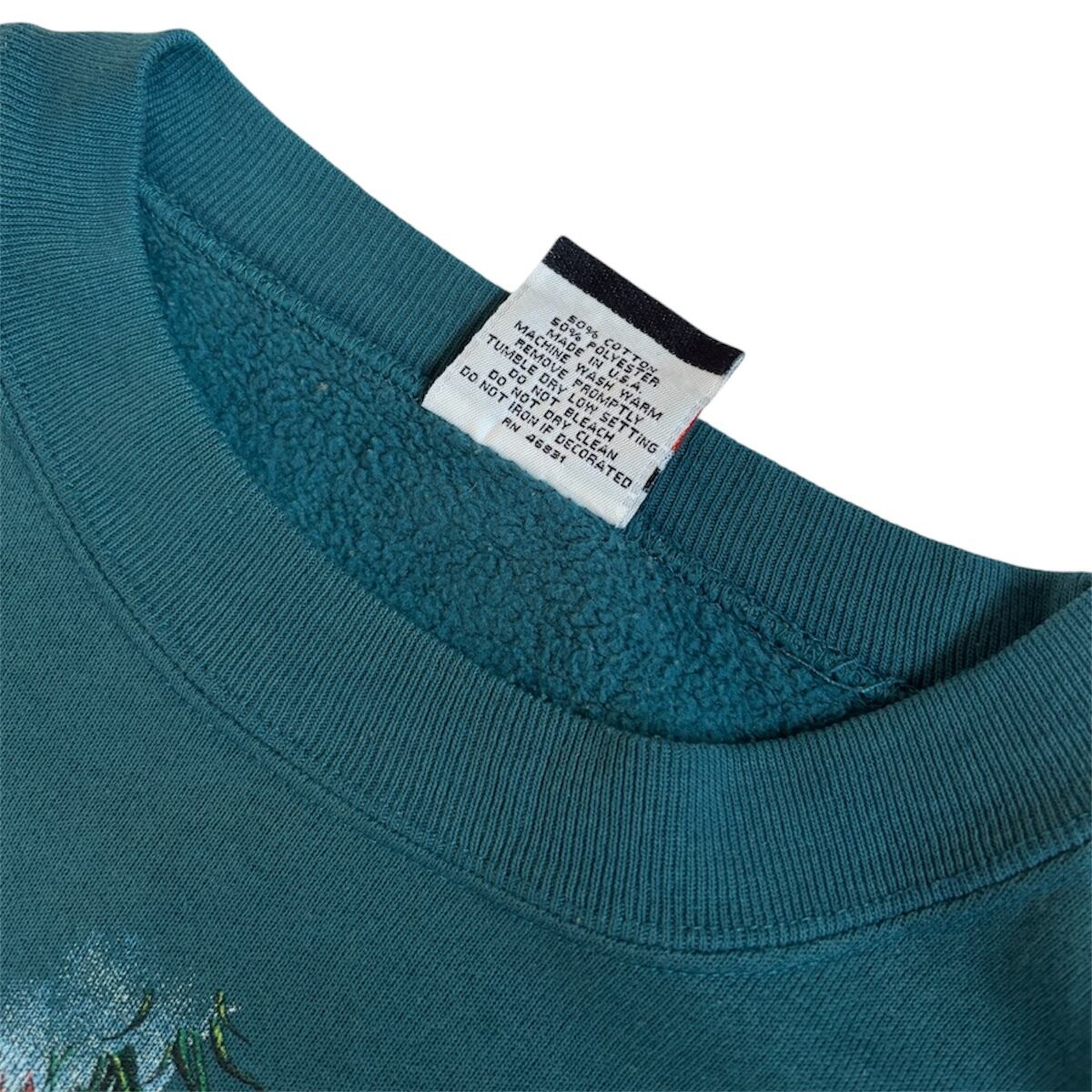 存在感のある古着スウェットです。裏起毛で暖かく、秋冬のコーディネートに最適です。